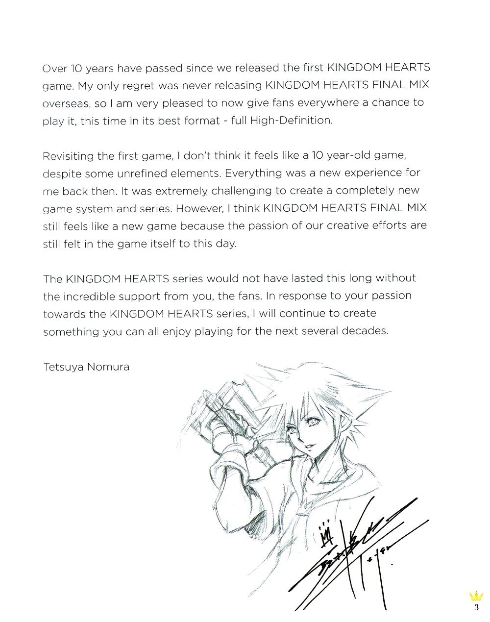 KH:海外版「KH I.5 HD」に掲載された、野村氏コメントとソラのスケッチ! (@LancelotAki)