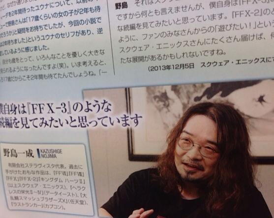 FF10:野島氏「(続編について)要望が届けば、新たな展開があるかも」 2013年12月26日 aibo[FF-Reunion] Square-Enix 103 本日発売された「ファイナルファンタジー X/X-2 HD Remaster アルティマニア」に野島一成氏のインタビューが掲載。野島氏は「(続編について)要望が届けば、新たな展開があるかも」「僕自身は10-3のような続編を見てみたい」等を発言されています。衝撃の?「ボイスドラマ」の内容もアレですが・・・続編は実現するのでしょうか?内容共々気になりますね。 ファイナルファンタジー10