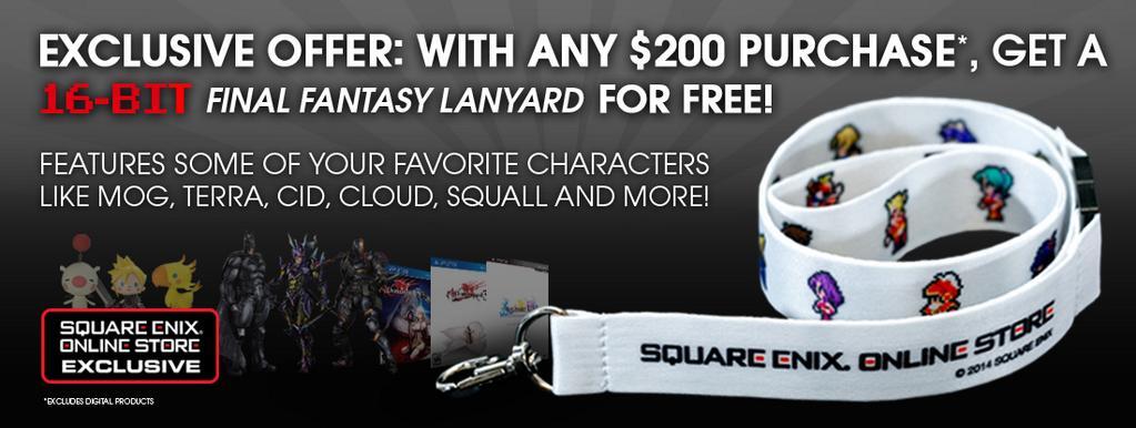 スクエニ:北米e-STOREで200ドル以上買い物すると、16bitのFFキャラ(モーグリ、ティナ、クラウド他)ストラップ貰える